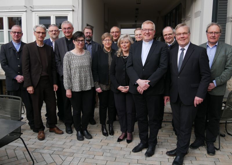 Die Teilnehmerinnen und Teilnehmer von links: Weihbischof Josef Holtkotte, Kirchenrat Thomas Warnke, Präses Michael Keil, Prälat Thomas Dornseifer, Synodale Kerstin Koch, PD Dr. Burkhard Neumann, Synodale Susanne Schüring-Pook, Weihbischof Dr. Dominicus Meier OSB, Synodale Friederike Miketic, Offizial Hans Jürgen Rade, Diözesanadministrator Msgr. Dr. Michael Bredeck, Pers. Referent Matthias Micheel, Landessuperintendent Dietmar Arends, Kirchenrat Dr. Arno Schilberg.