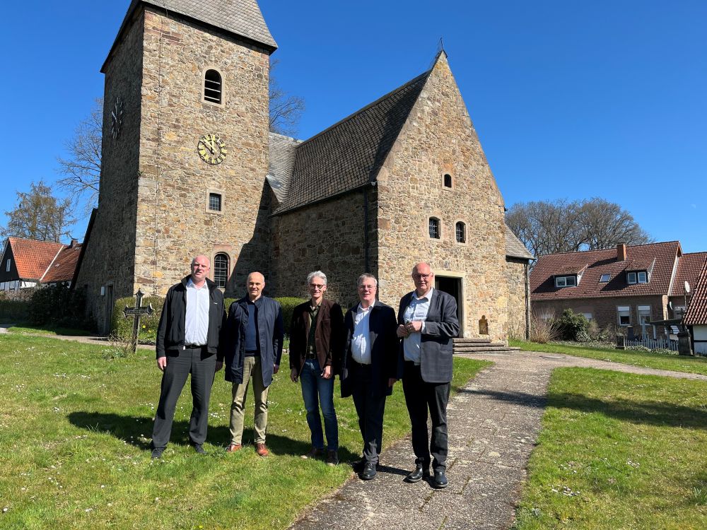Station in Donop v.l.: Dirk Niederhöfer (Vorsitz Kirchenvorstand), Kirchenrat Martin Bock, Kirchenrat Thomas Warnke, Landessuperintendent Dietmar Arends, Superintendent Dirk Hauptmeier (Klasse Nord).