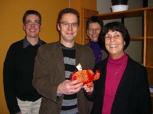 Wolfgang Blum freut sich über die Spende für Projekte der Norddeutschen Mission in Togo, übereicht von den Alavanyo-Mitarbeiterinnen Maike Ramrath, Elisabeth Engel und Christa Goeken (von links).