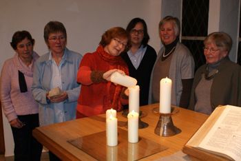 Mitglieder des Arbeitskreises brachten die Kernbegriffe des biblischen Textes „Bedrängnis, Geduld, Hoffnung“ aus Römer 5,1-5 mit ihren persönlichen Erfahrungen in Verbindung. Sie hatten erlebt, dass die Schritte des Bekenntnisses („Den Schmerz des Anderen hören“, „Den eigenen Schmerz ausdrücken“, „Den Platz zwischen den Stühlen einnehmen“) Impulse geben für das Umgehen mit anderen gesellschaftlichen und auch persönlichen Konflikten. Weitere Infos: Brigitte.Grosche@t-online.de