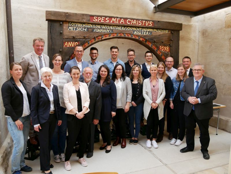 Über 15 neue Religionslehrer freuen sich: Landespfarrer Andreas Mattke (2.v.l.), Elisabeth Webel (3.v.l., Schulkammer der Lippischen Landeskirche), Pfarrer i.R. Lothar Teckemeyer (7.v.l.), Peter Dück (2. v. r., Ev. Freikirche Herberhausen), Kirchenrat Tobias Treseler (rechts, Lippische Landeskirche).