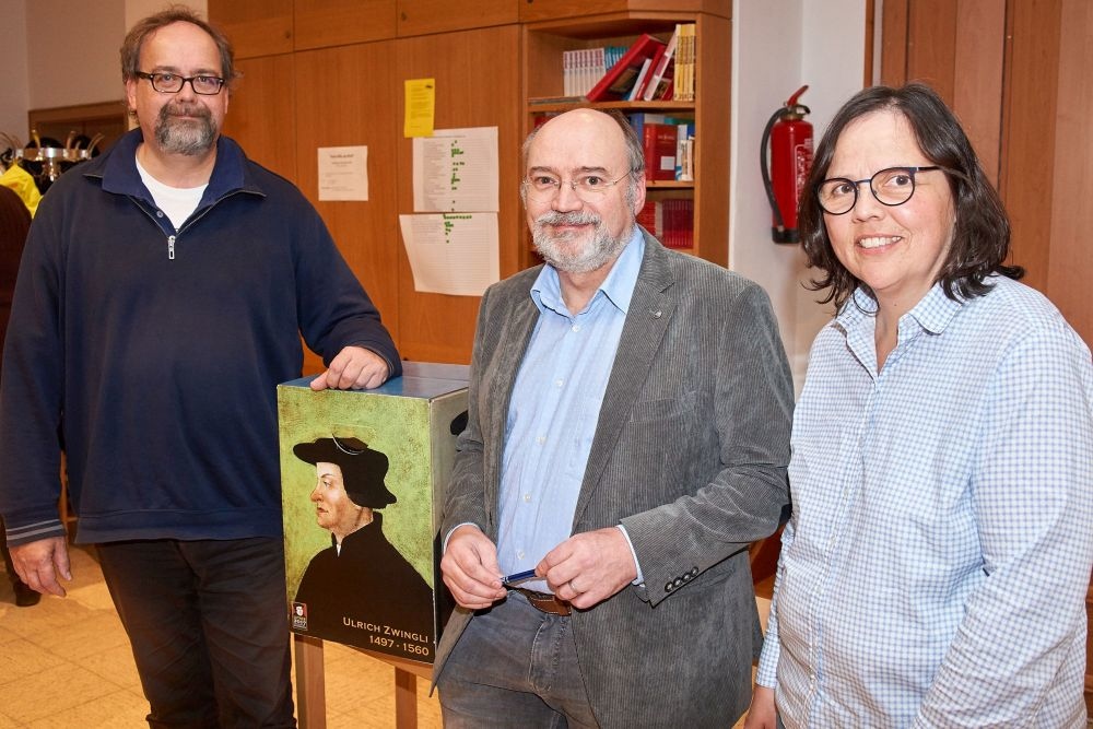 In dieser Reihe beschäftigte sich Prof. Georg Plasger (Universität Siegen) im Gemeindehaus der ev.-ref. Kirchengemeinde Hiddesen in seinem Vortrag „Die schöne Braut Christi“ mit Zwinglis Verständnis der Kirche. Zwingli konzentriere sich in verschiedenen Schriften immer wieder auf drei „Definitionen“ bzw. Bedeutungen von Kirche, so Plasger. Die eine Dimension von Kirche sei die Ortsgemeinde. Diese Definitionen sei stark zeitgeschichtlich beeinflusst, denn sie beinhalte, dass nicht der Papst oder ein Bischof, sondern Jesus Christus das Oberhaupt der Kirche sei. Damit habe Zwingli die Züricher Gemeinde „befreien“ wollen vom Einfluss des übergeordneten Bischofs in Konstanz.
